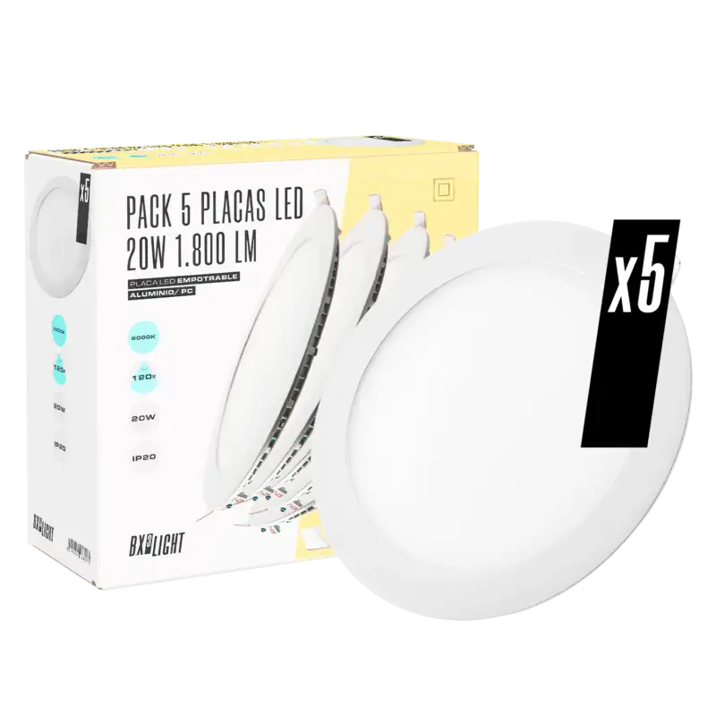 11,50 € IVA inc.Pack 5 Placas LED 20W 1.800Lm 6000ºK Circular 40.000H [BX3-1027P5-CW]