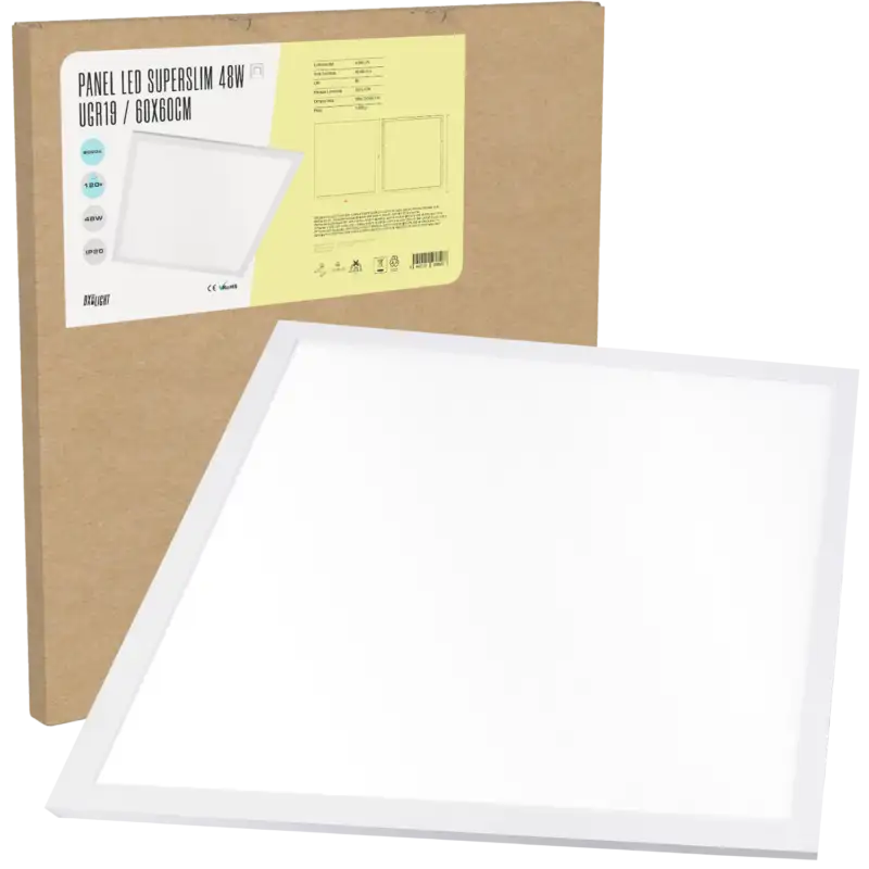 12,46 € - 12,81 €Rango de precios: desde 12,46 € hasta 12,81 € IVA inc.Panel LED Superslim 48W 4.800Lm 6000ºK 60x60Cm UGR19 40.000H [BX3-PL-595-48-CW]