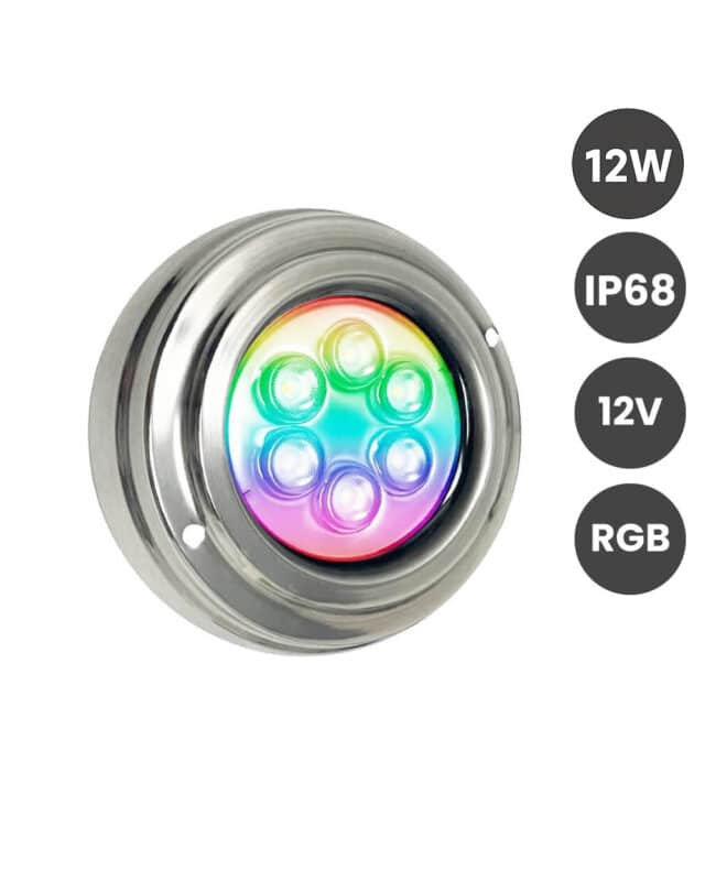 Lámpara LED RGB Sumergible 12W 12V IP68 Acero Inoxidable 316