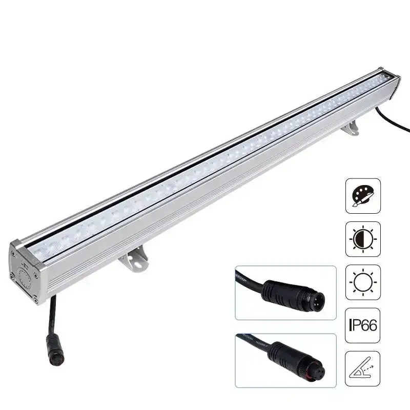 Temperatura Luz RGB+BLANCO DUAL REGULABLEEl bañador LED 24W RGB+CCT es una solución de iluminación profesional diseñada para realzar fachadas, muros y elementos arquitectónicos tanto en exteriores como en interiores. Gracias a su tecnología RGB combinada con CCT, permite crear ambientes dinámicos, decorativos o funcionales desde una sola luminaria, adaptándose a cualquier proyecto lumínico.