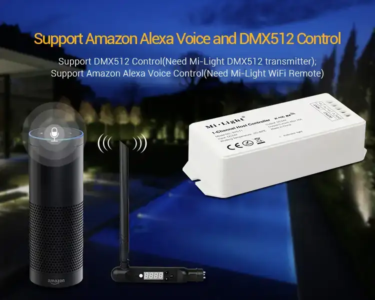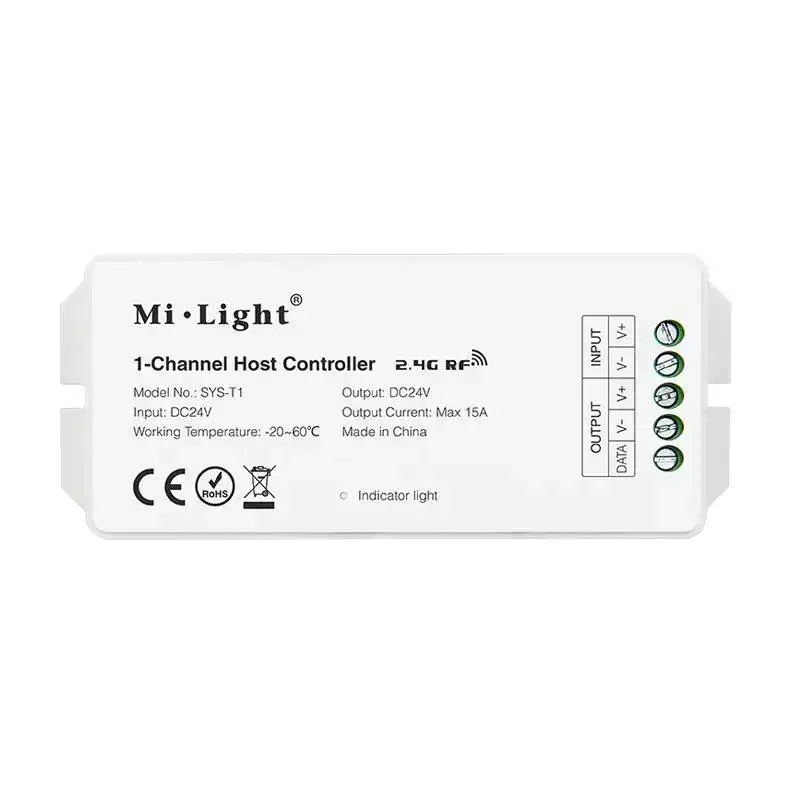 DMX512: Opcionalmente puedes añadir a la instalación un Transmisor DMX permite tener un control total de las luminarias. Se conecta a la mesa de control o master DMX y permite mediante señal inalámbrica 2,4GHz controlar las luminarias a su alcance sin necesidad de cables.