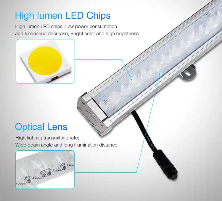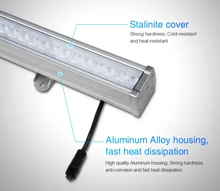 Con sus 24W de potencia, este bañador LED ofrece un excelente equilibrio entre consumo energético y rendimiento lumínico. La distribución de la luz está pensada para bañar superficies de forma homogénea, evitando sombras duras o puntos de luz irregulares.