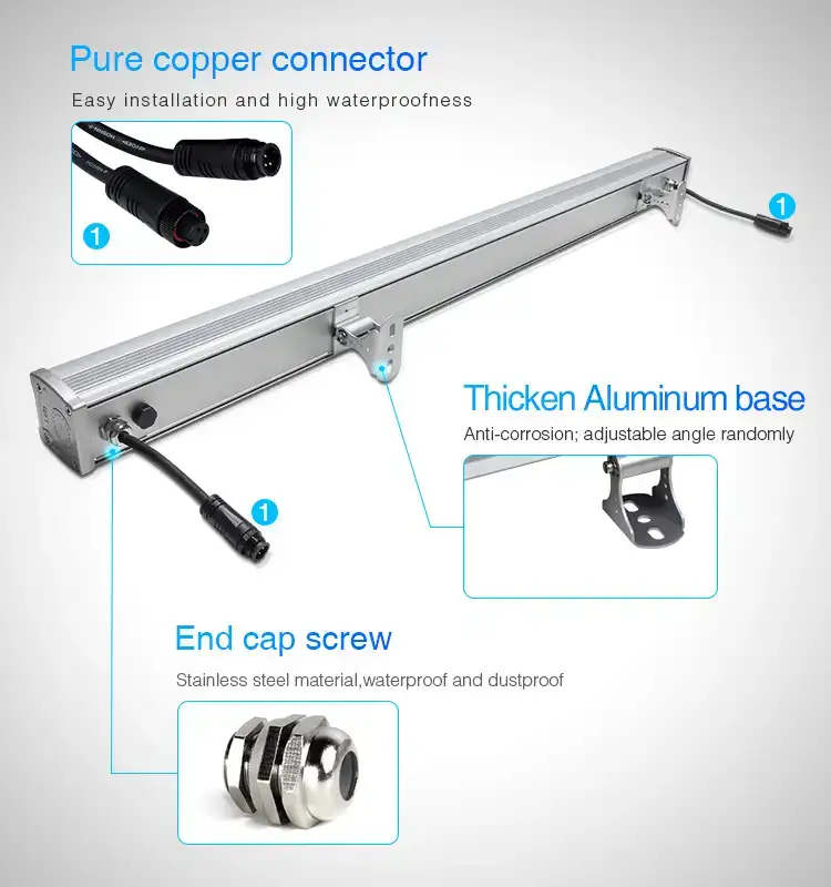 Una de las principales búsquedas de los usuarios es disponer de un sistema que combine colores RGB con blanco regulable, y este bañador LED responde perfectamente a esa necesidad. Permite trabajar tanto con iluminación decorativa multicolor como con luz blanca ajustable en temperatura, ideal para cambiar el ambiente según el evento, la estación del año o el uso del espacio.