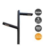 Farola LED compuesta de acero, aluminio y PMMA con acabado en color negro. Con 100W de potencia, 4 metros de longitud y chip OSRAM. Ofrece dos módulos ópticos de Philips Lumileds y un ángulo de apertura de 78º perfecto para espacios amplios.
