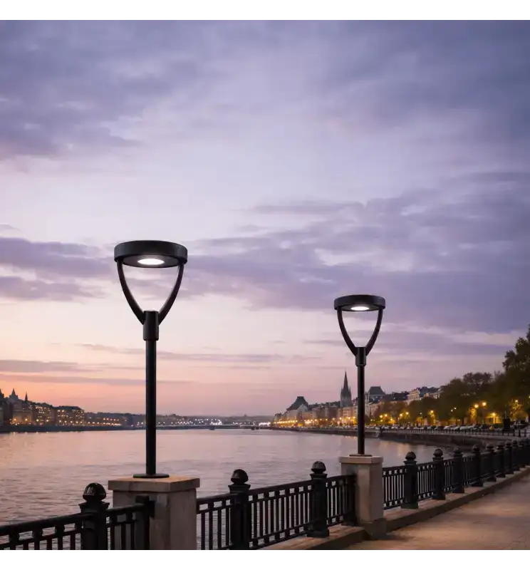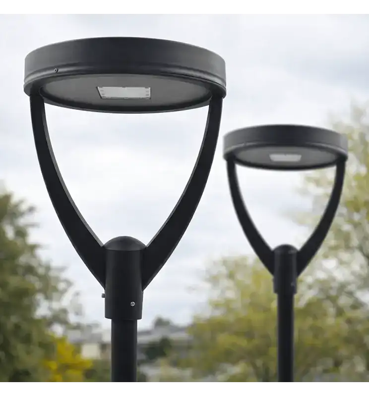 Su diseño moderno tipo cónico mejora la integración estética en entornos urbanos actuales.