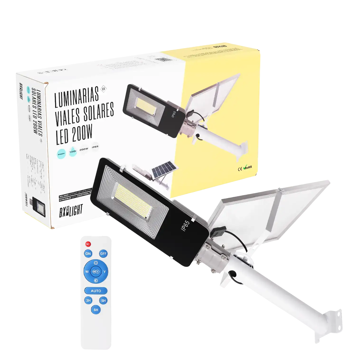 Farola LED Solar-Control Remoto- Dimable- Panel: 6V 200W Batería: 3,2V 20000MaH [BX3-FAR-SOL-200W-CW]