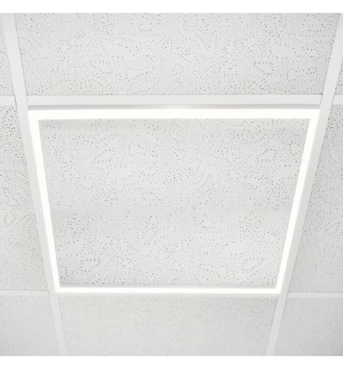 El Fit Panel LED 60×60 presenta un diseño ultrafino con marco de aluminio y difusor de policarbonato,
