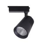 Color Blanco, NegroFoco de carril de la serie TELMA realizado en aluminio y policarbonato en color BLANCO. De diseño moderno y original. Posee TECNOLOGÍA LED INTEGRADA, con 20 watios de potencia, 1800 lúmenes y 4000 K (blanco natural). Tiene una medida, regulable en el plano vertical de 14,8<18×15,5×8,2 centímetros y un peso neto de 265 gramos. Es orientable 330º y su apertura de luz es de 36º. Este mismo modelo, lo podemos encontrar en blanco o en negro, con 20, 30 o 40 watios, y con luz cálida (2700k), natural (4000k) o blanco frío (6000K).