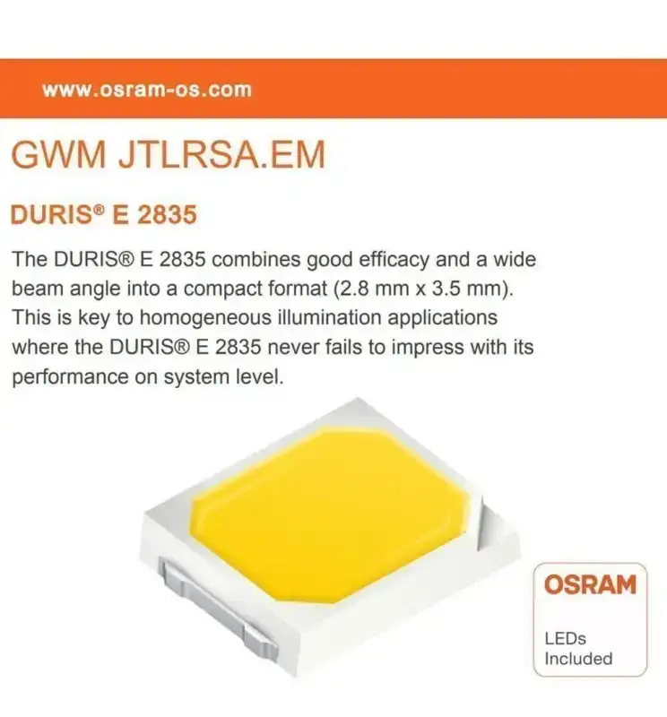 Los chips OSRAM ofrecen alta eficiencia, durabilidad y una iluminación uniforme de calidad profesional.