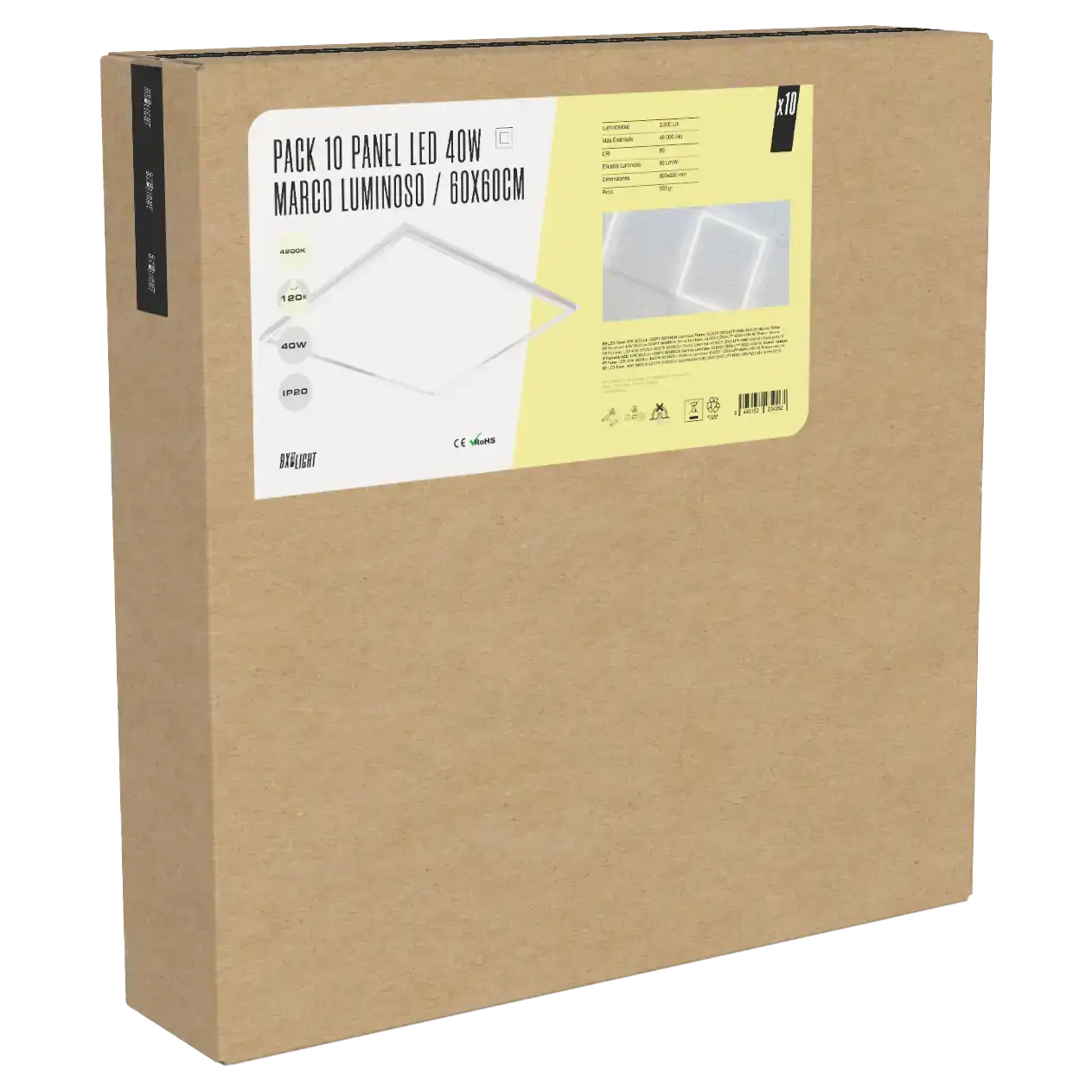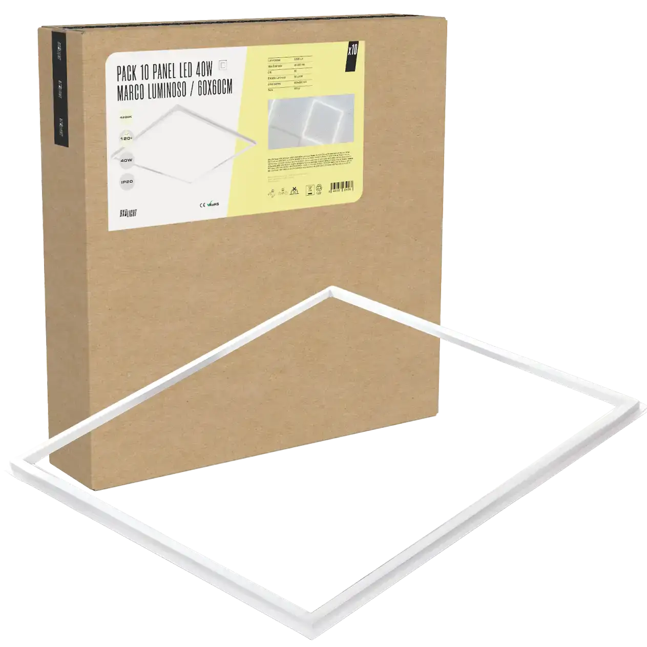 Pack 10 Panel Led 40W 3.600Lm 6000ºK 60X60Cm Marco Luminoso 40.000H [BX3-LPF-6060-40W-CW]