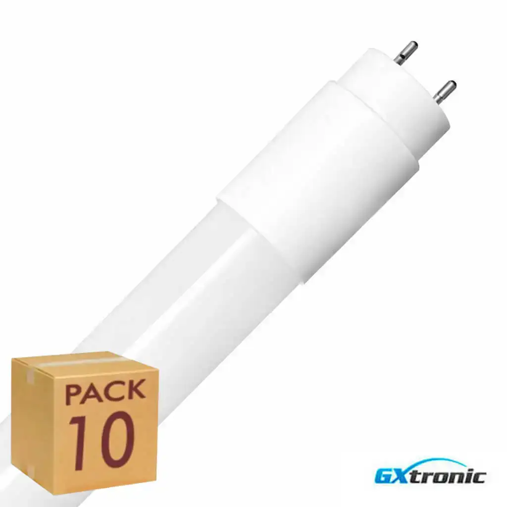 El pack de 10 tubos LED T8 de 18W y 120cm GXtronic es una solución eficiente y profesional para sustituir tubos fluorescentes tradicionales en instalaciones de iluminación interior. Fabricados con cuerpo de cristal y un amplio ángulo de apertura de 300º, proporcionan una iluminación uniforme, potente y sin zonas oscuras.