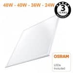 El Panel LED 60×60 Multivatio, con potencia seleccionable (48W – 40W – 36W – 24W), está equipado con Diodos de alta luminosidad OSRAM CHIP y un driver NO FLICK. Con dimensiones de 60×60 (595×595 mm), es ideal para techos desmontables. Permite instalación empotrada con el convertidor, en superficie y en suspensión mediante nuestro kit de suspensión