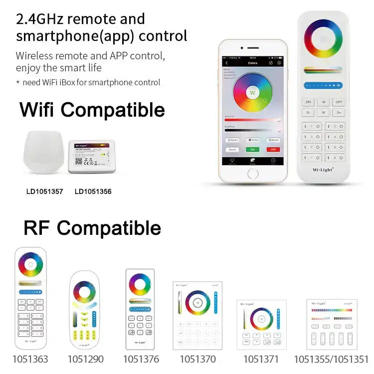 Su sistema de control RF (radiofrecuencia) facilita el manejo inalámbrico, permitiendo cambiar intensidad, temperatura de color y efectos RGB sin necesidad de visión directa.