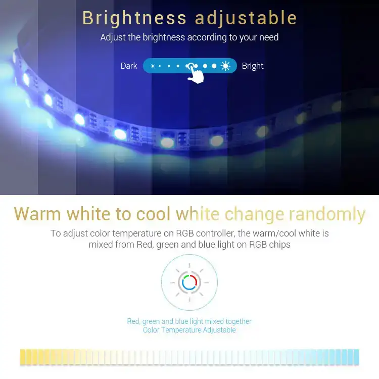 | Temperatura de Color | RGB + 2700K – 6500K |