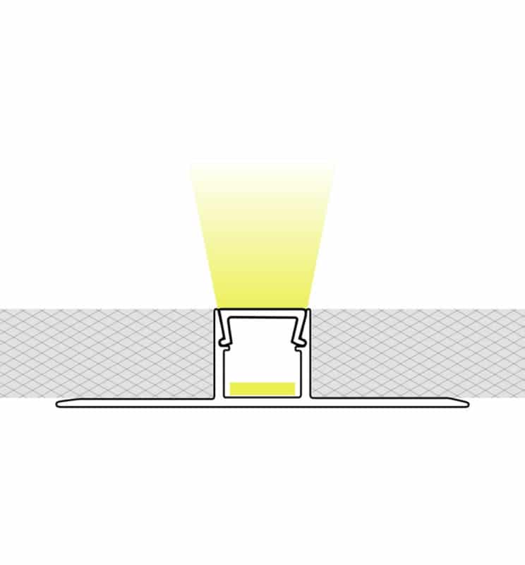 aluminio empotrable para tiras LED. Diseñado para quedar a ras del acabado en