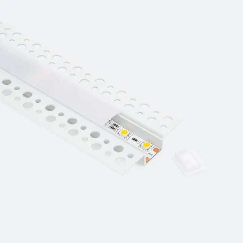 El perfil de aluminio integrado para escayola y pladur es la solución ideal para crear líneas de luz empotradas totalmente integradas en techo o pared. Diseñado para tiras LED de hasta 15 mm de ancho, permite una instalación limpia, moderna y profesional en proyectos residenciales y comerciales.