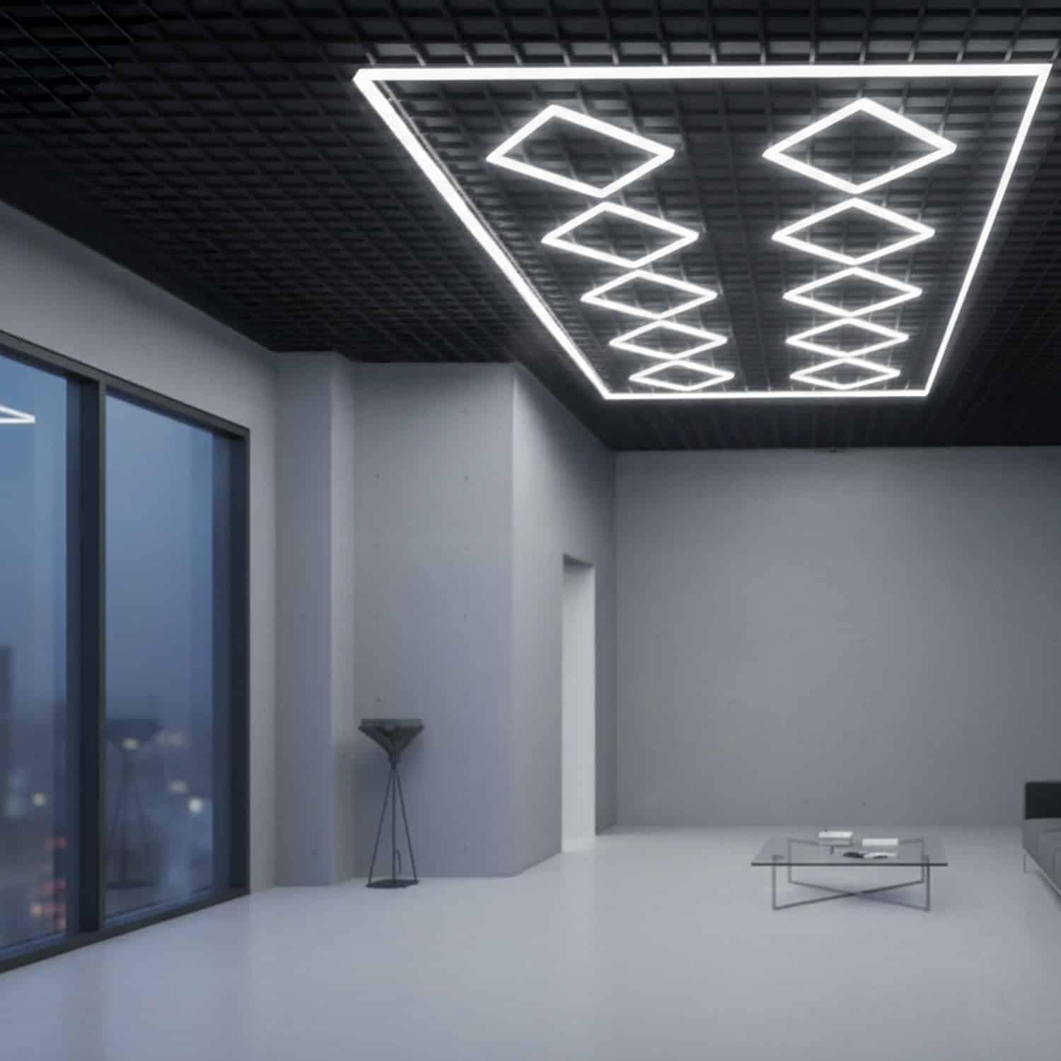La Regleta LED Hexagonal Rombo 510W es la elección perfecta para quienes buscan iluminación de alto rendimiento, estilo vanguardista y eficiencia energética.