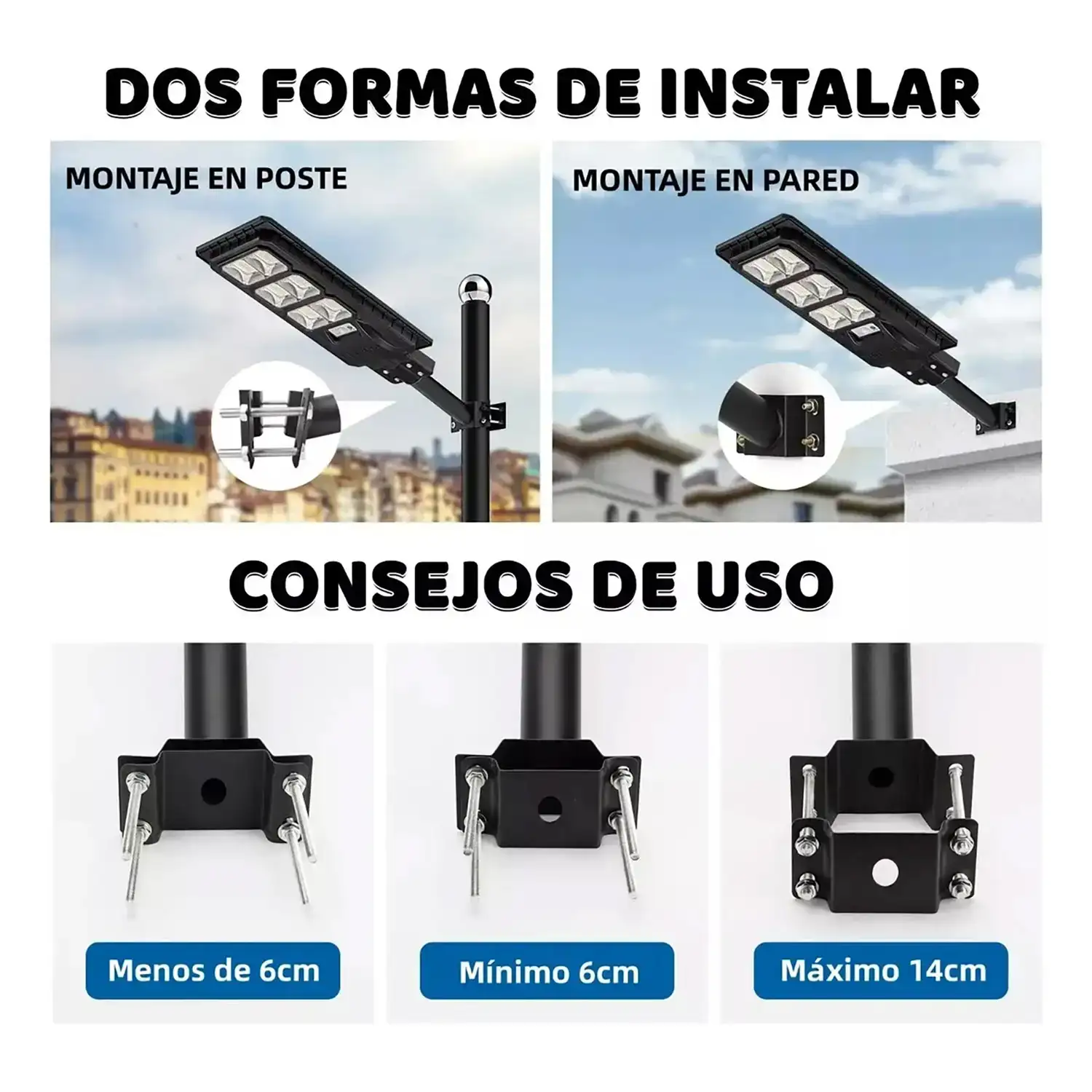 El diámetro de 58mm es uno de los estándares más utilizados en farolas LED modernas, lo que convierte a este soporte en una solución versátil para múltiples modelos de luminarias.