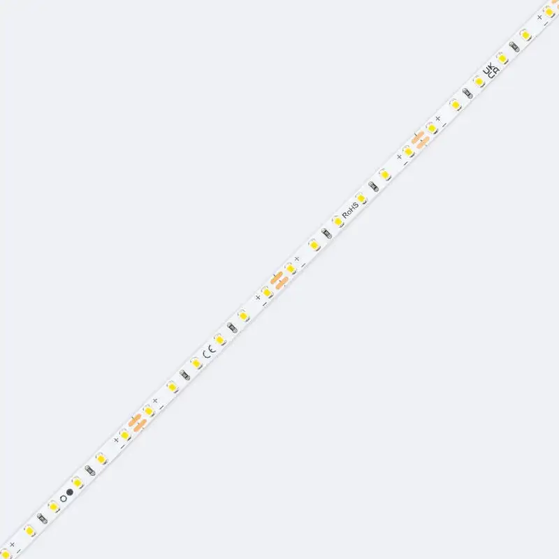Tira LED 24V ultrafina de 3mm con 168 LED/m. 5W/m y 400lm/m para iluminación decorativa interior. Corte cada 5cm. Ideal para espacios reducidos.