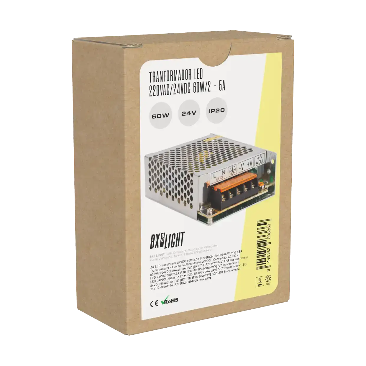 Transformador – Fuente de Alimentación AC/DC – Convertidor AC/DC – 220VAC/24VDC 60W/2 – 5A IP20 [BX3-TR-IP25-60W-24V]