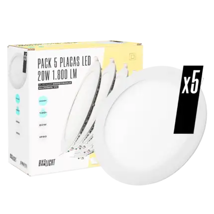 Pack 5 Placas LED 20W 1.800Lm 6000ºK Circular 40.000H [BX3-1027P5-CW]