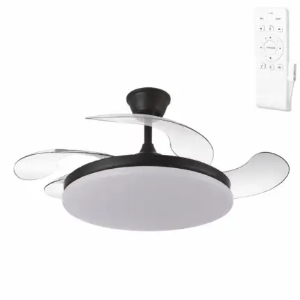 Ventilador DC Tridente 59w Negro 4 Aspas Desp. 107d 6980lm Reg.intensidad Remoto+Temporizador+Memoria 3000-4000-6000k
