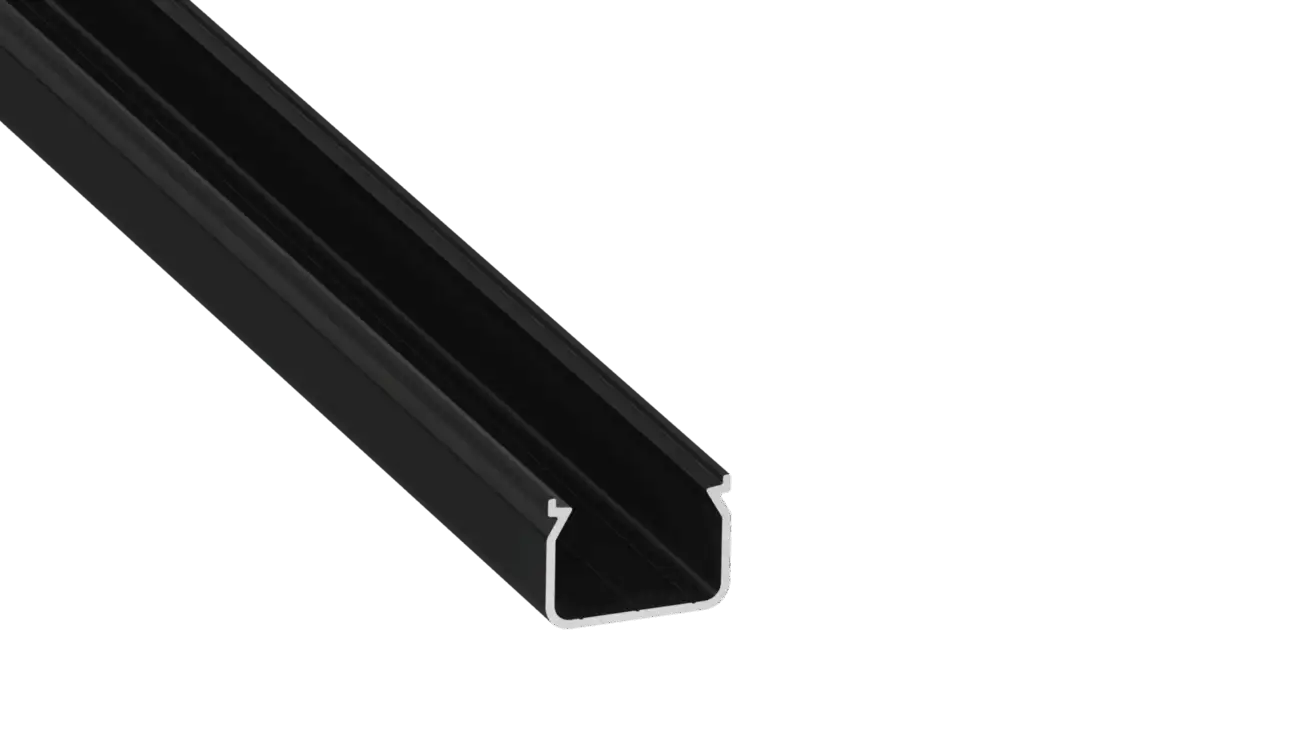 Perfíl Aluminio KIMERA-"HOM" Anodizado Negro con Difusor Opal , Tapones y Clips Sujección 2,02M