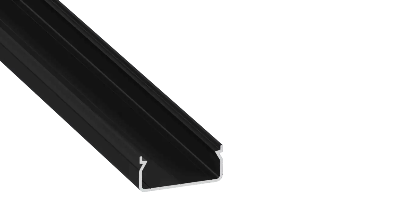 21,76 € IVA inc.Perfíl Aluminio KIMERA-"EGEN" Anodizado Negro con Difusor Opal , Tapones y Clips Sujección 2,02M