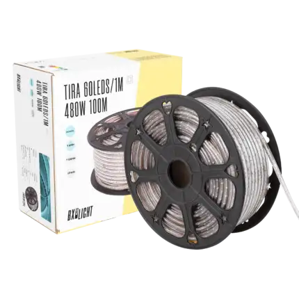 Tira de 60 LEDs/M 480W 24.000Lm 6000ºK SMD3528 220VAC IP65 x100M 40.000H [BX3-2203528-60100MCW]